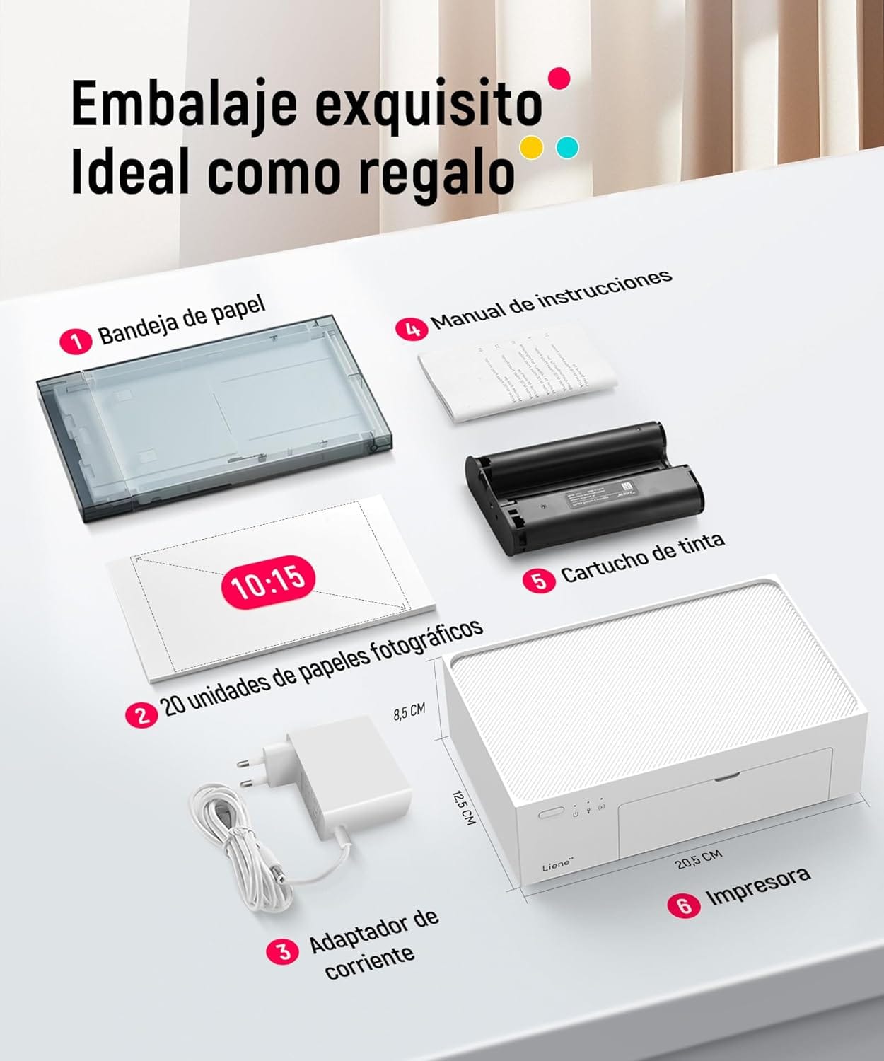 La Liene Amber M100 es una impresora fotográfica móvil diseñada para convertir tus recuerdos digitales en fotos físicas de calidad. Con conectividad WiFi y compatibilidad para PC, iPhone y Android, esta impresora promete una experiencia de impresión rápida y cómoda.